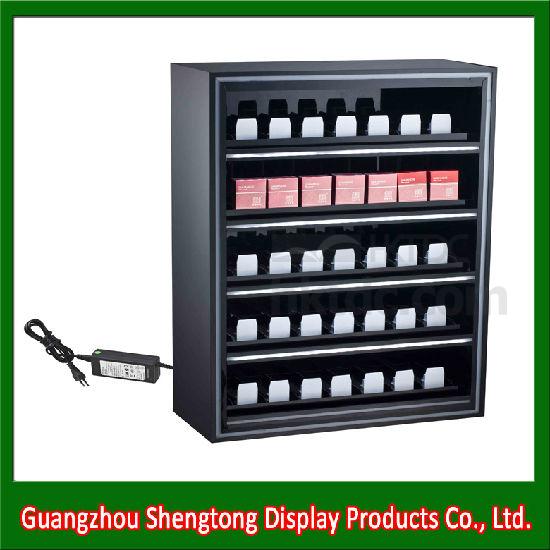 This delicately made display case is the best way to showcase cigarettes. The display case is constructed of five rows of shelvings and each row displays up to seven packs of cigarette. Covered with a hinged glass door to prevent dust and protect the items while offering a clear displaying. The installed LED lights provide better visibility at night and increase its overall attractiveness with a stylish touch.
