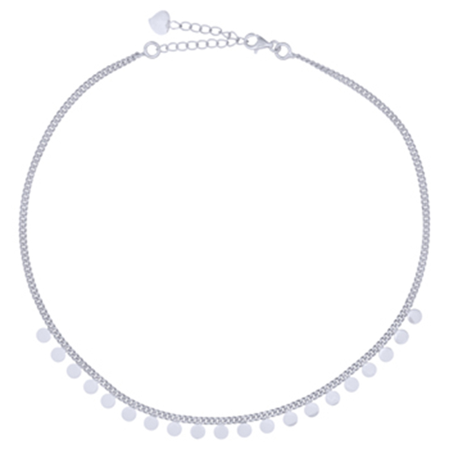 Circle Discs Centered In Rhodium Plated Choker Necklace