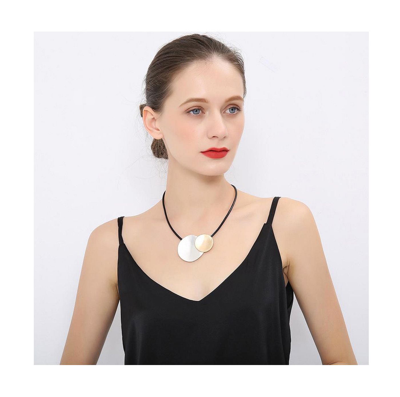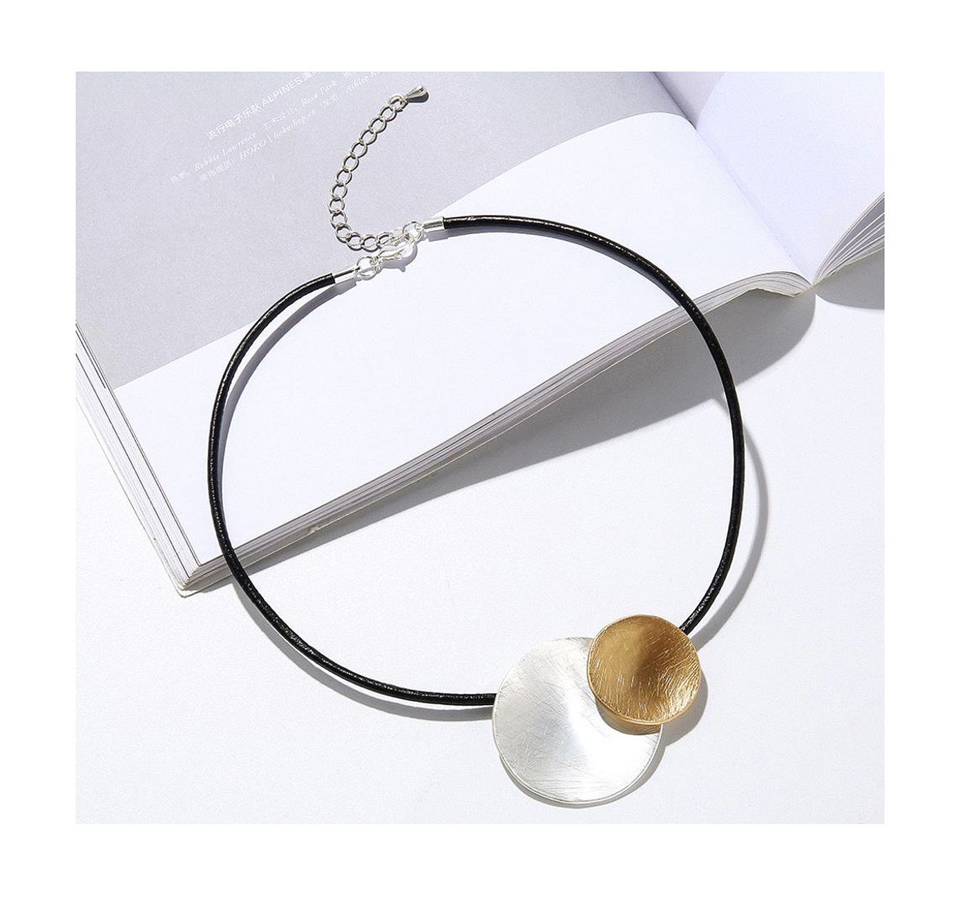 As shown is a high-fashion circle pendant alloy parts jewelry wax rope necklace.