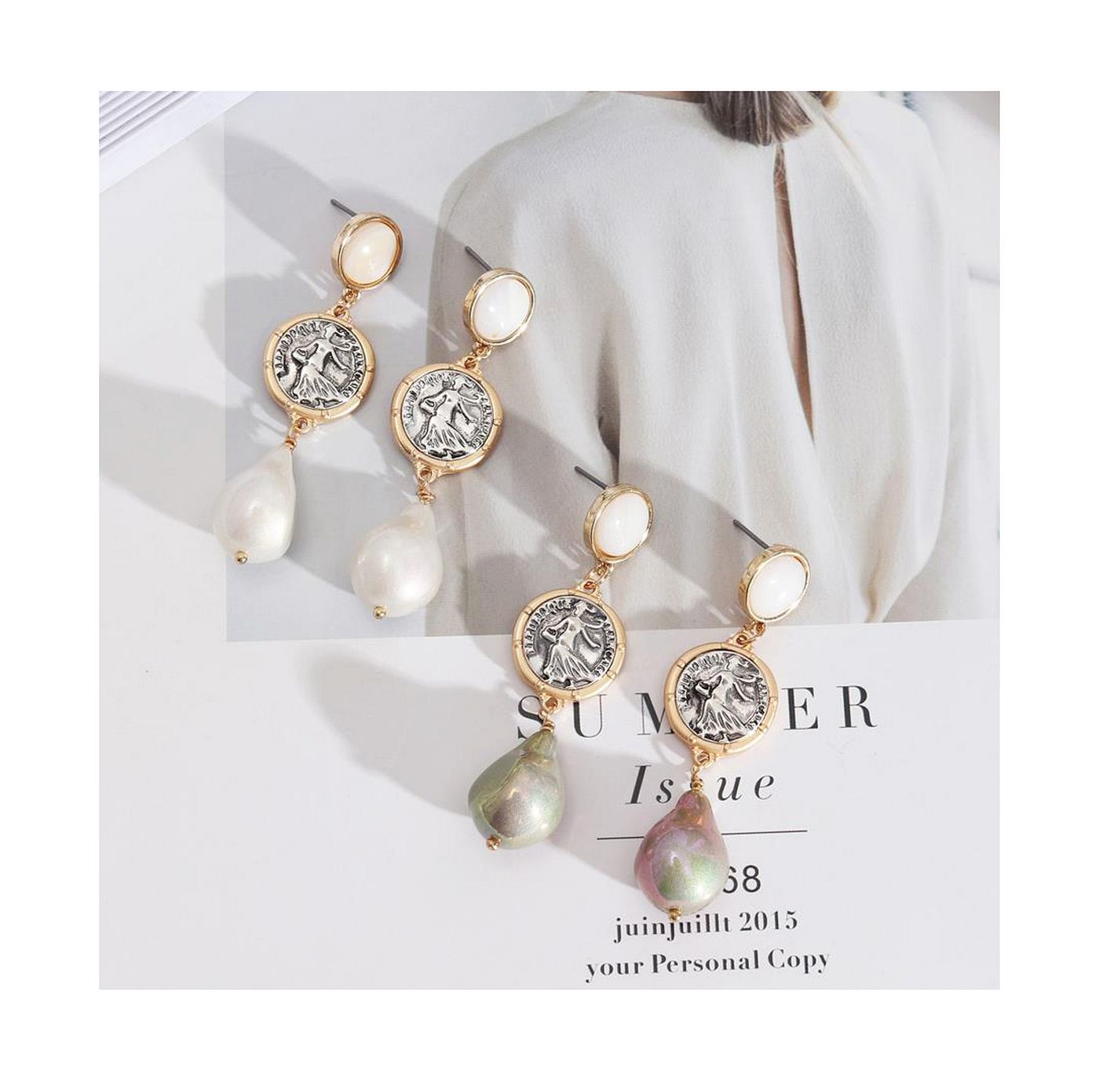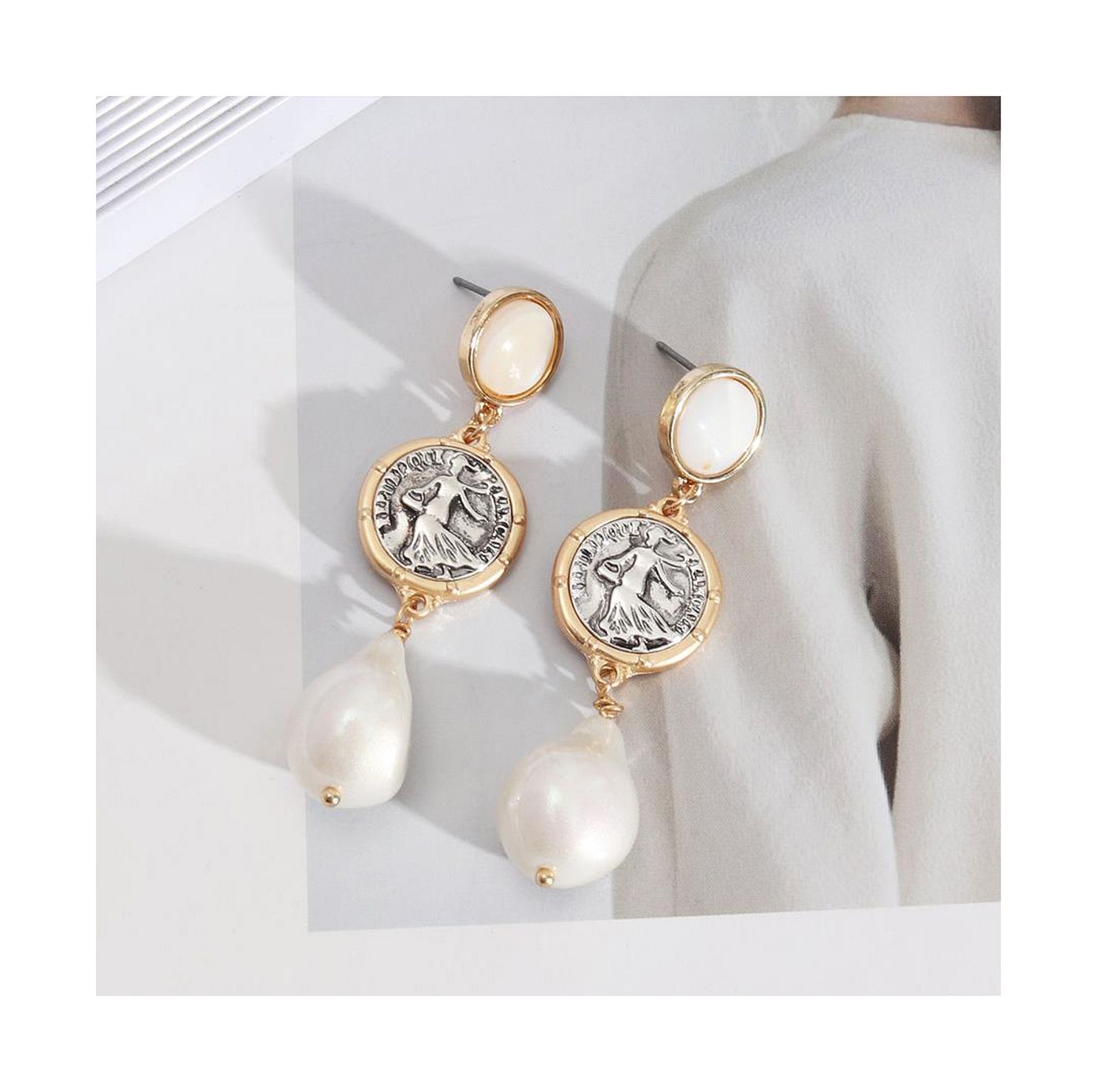 As shown is a high-fashion circle style golden plated alloy parts drop earring.