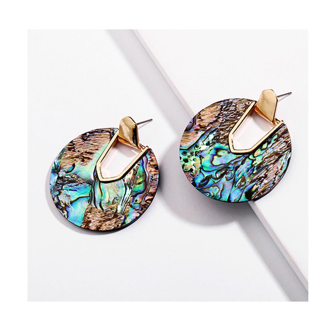 As shown is a high-fashion circle style golden plated alloy parts drop earring.