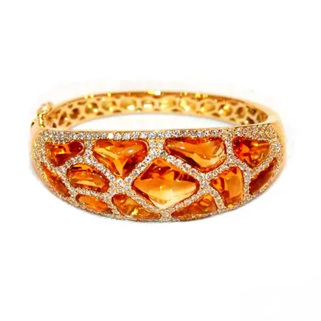 Highlighted is a ladies’ bracelet boasting a classy appearance. The bracelet is set in glittering 18K yellow gold, adorned with crystal-clear citrines. The citrines come in fancy puffed cuts to unleash irresistible glamor in the gold setting.