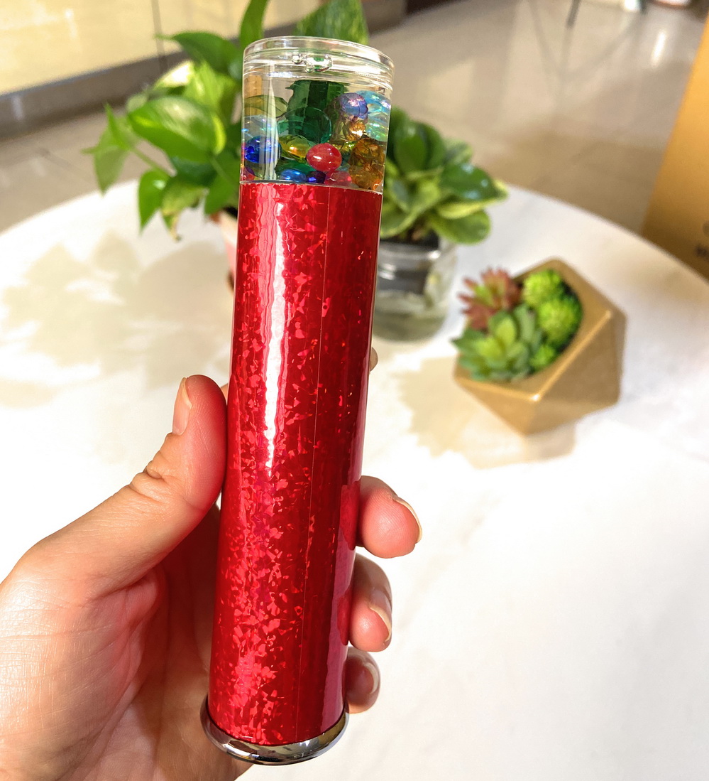 • acrylic cups are durable, shatter-proof filled with oil and colorful beads in various colors and shapes.