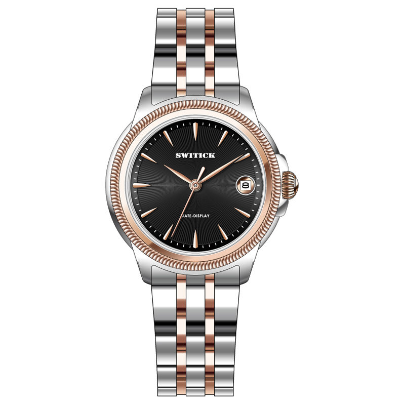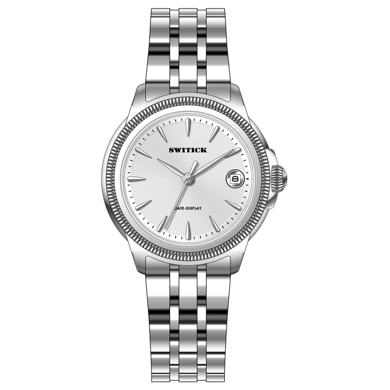 Full-steel wristwatch combines 316L stainless steel case & bracelet with ultra-thin Japanese quartz movement.