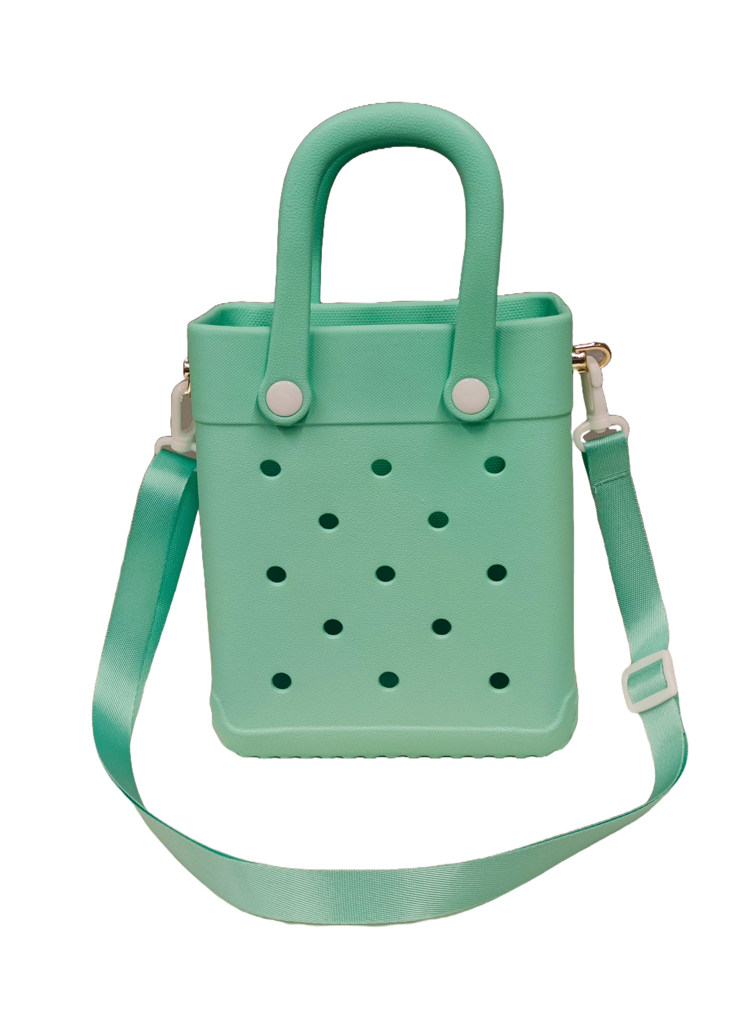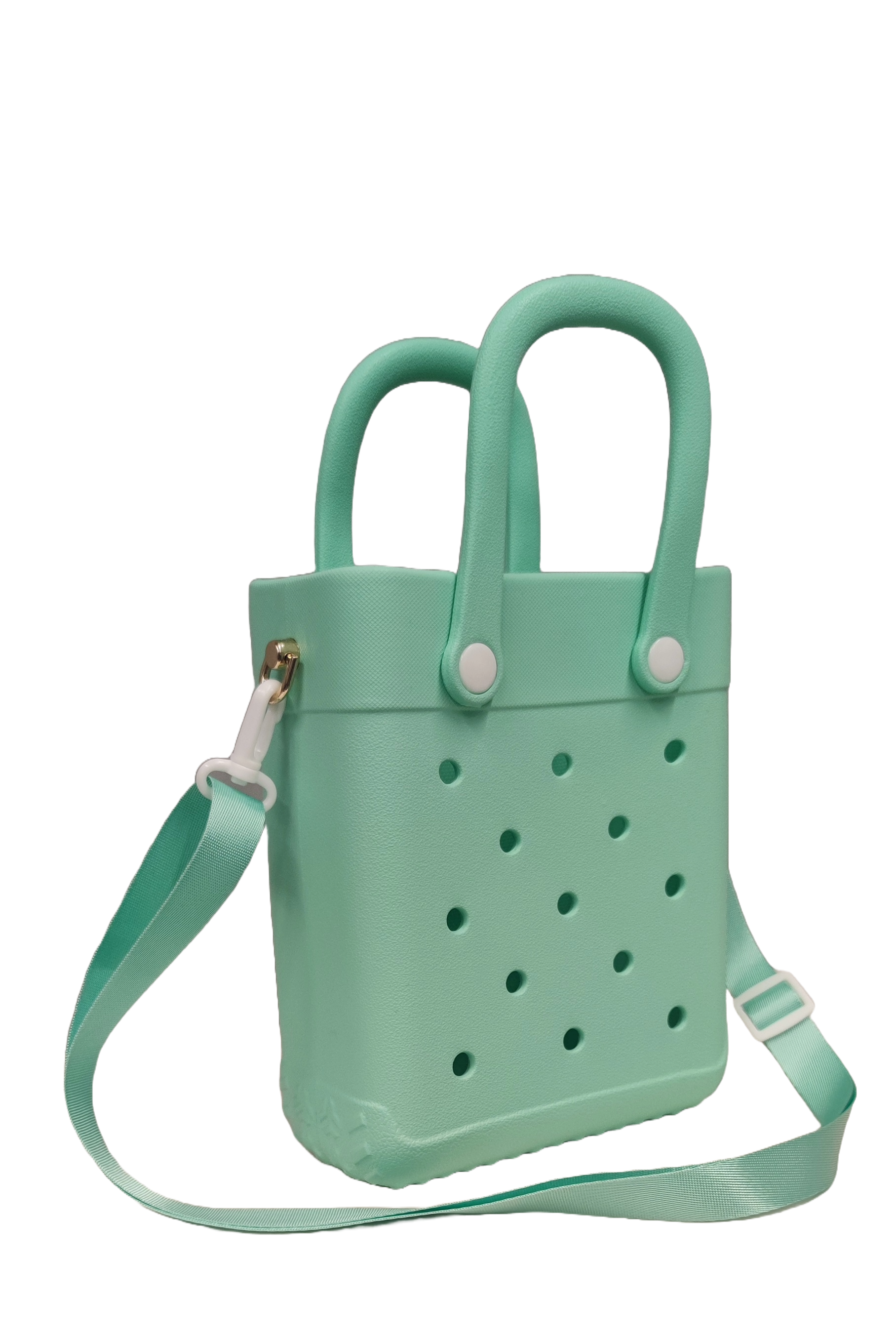 Compact, versatile, and stylish! Combining the classic 'hole bag' aesthetic with modern portability, this mini tote is the perfect accessory for outdoor fun, casual outings, or travel.