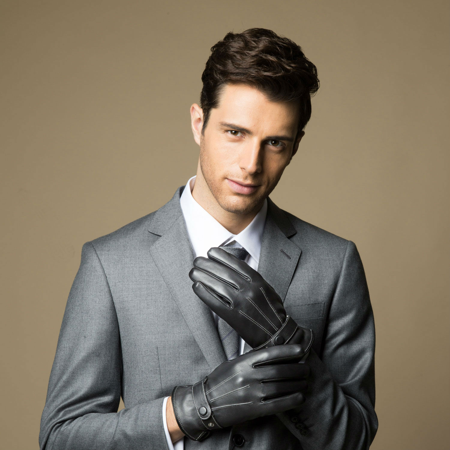 With these leather gloves, your hands can stay warm despite the cold weather. This refined one is manufactured with soft sheepskin leather to boast great class. The back of the hands features contrasting stitches which make the gloves a bit more youthful, while the slightly flared cuffs are embellished with a strap with snap buttons for adjustment.