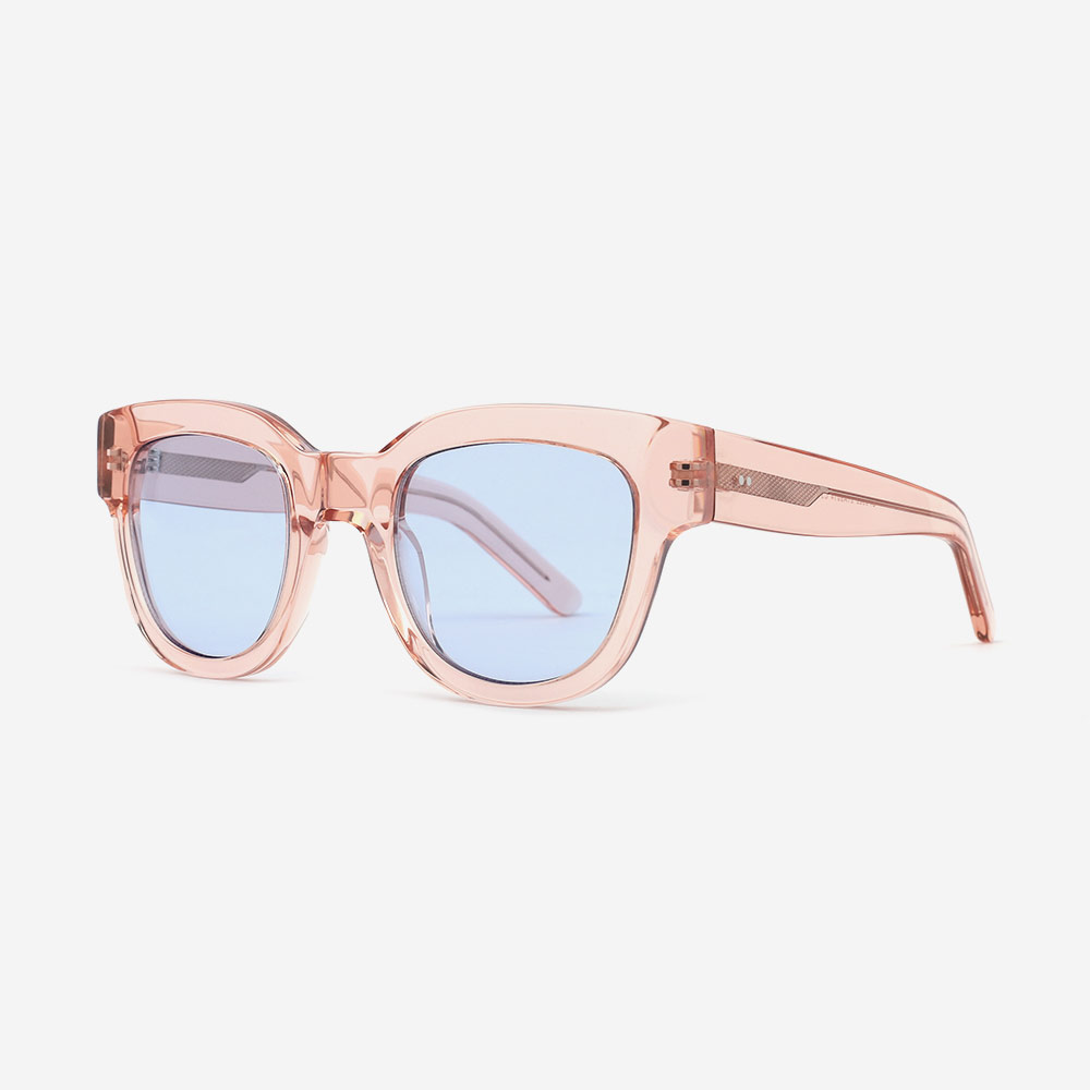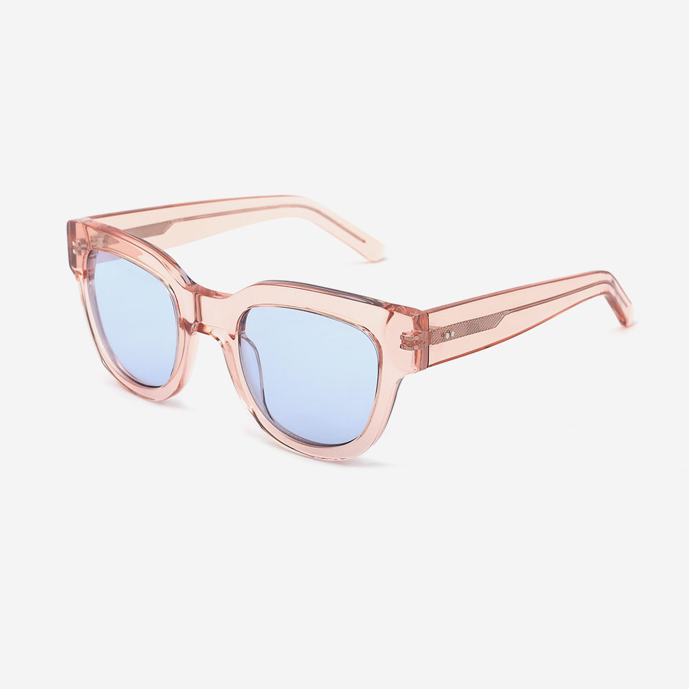 Semi transparent oversized slightly thicker square frame, handmade of acetate. TR18 lenses with UV400 protection and a five bar hinge with two visible rivets on temple,eccentric needle. Comes in 6 color for your reference,specially for fashion ladies and gentlemens applying different occasions.