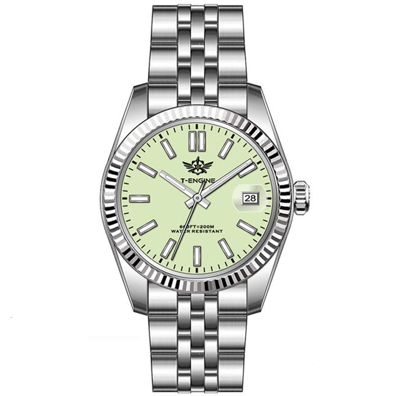 • Dial -  Matte printed dial, Applied indexes filled with luminous