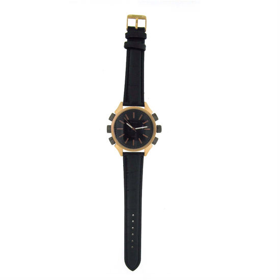 - Black or brown textured faux-leather band