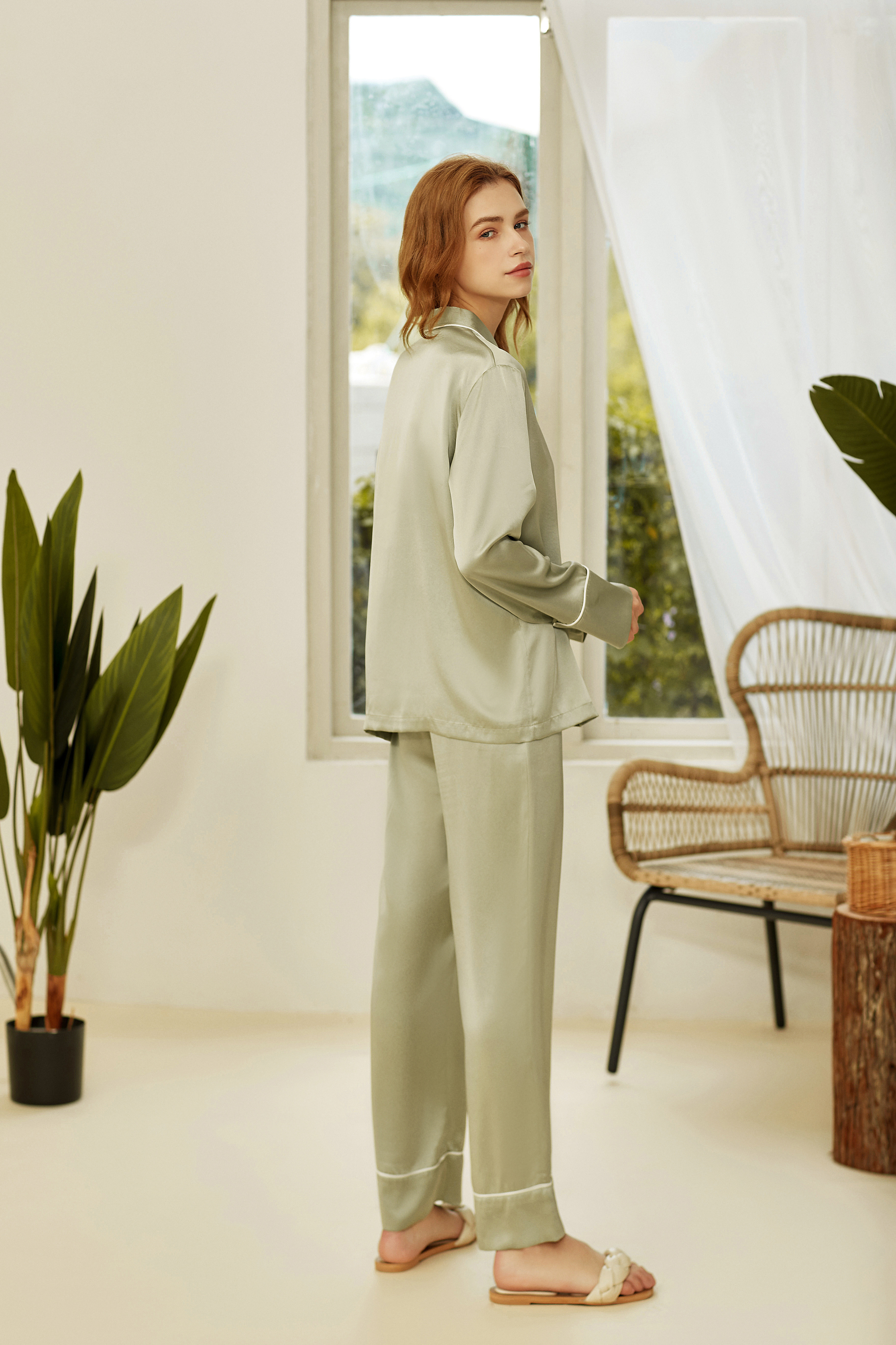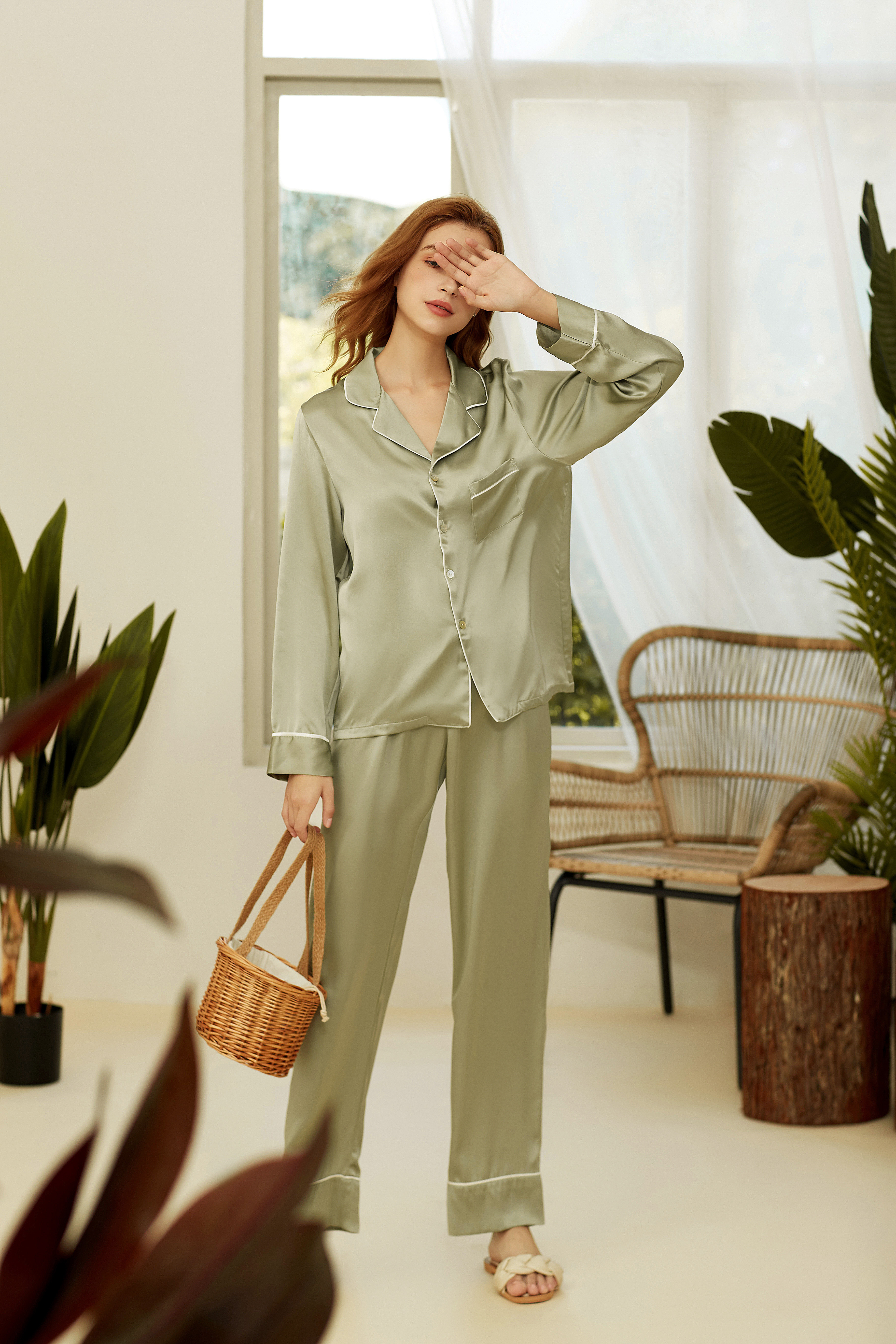 Whether lounging at home or enjoying a cup of hot tea before bed, this silk pajama set will make you feel unparalleled in comfort and warmth. Choose this set to fill every night with elegance and comfort.