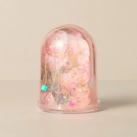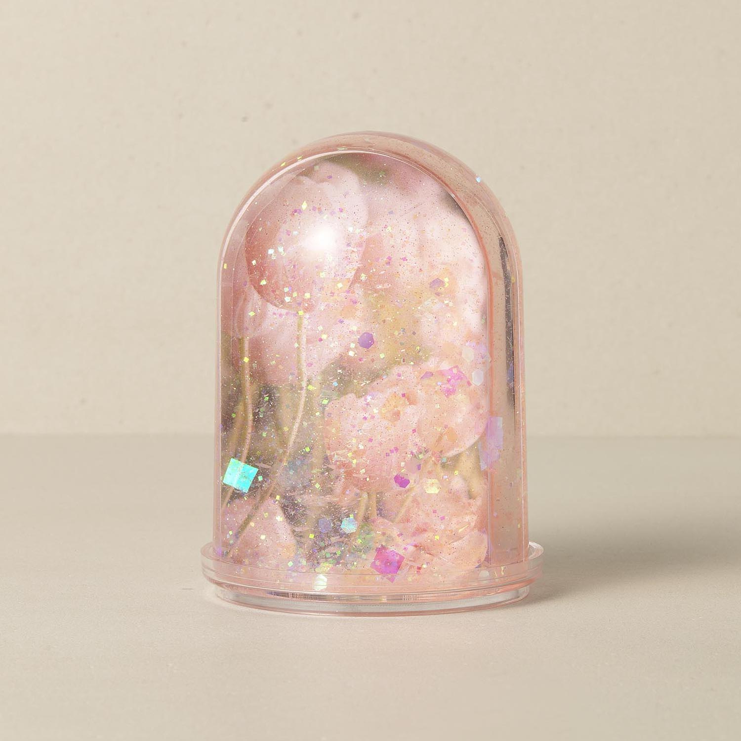 Tall photo water globe that is perfect for displaying your favorite photo. Rounded water globe that fits two photos, filled with water and shimmering glitter inside.
