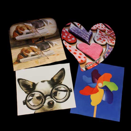 This pictured cleaning cloth is ideal for cleaning optical lenses, computer screens, etc. The microfiber construction removes dirt without scratches. This microfiber cleaning cloth is accented with heart patterns for added refinement.