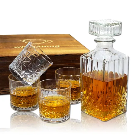Clear Decanter Whiskey Glass with 4 Carved Crystal Glasses for .......