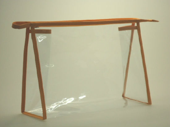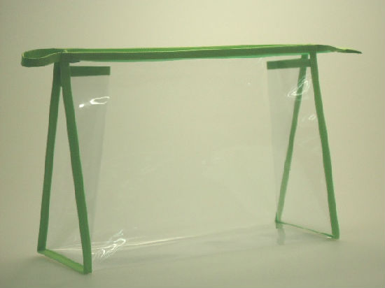 • Clear PVC with polyester triangular prism cosmetic bag.