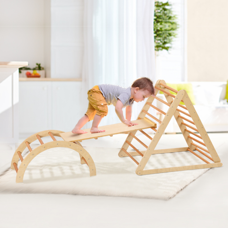 This is a perfect Set with 3 different goods Pikler Arch, ramp and pickler triangle climber. So your children can choose which one he wants to use.