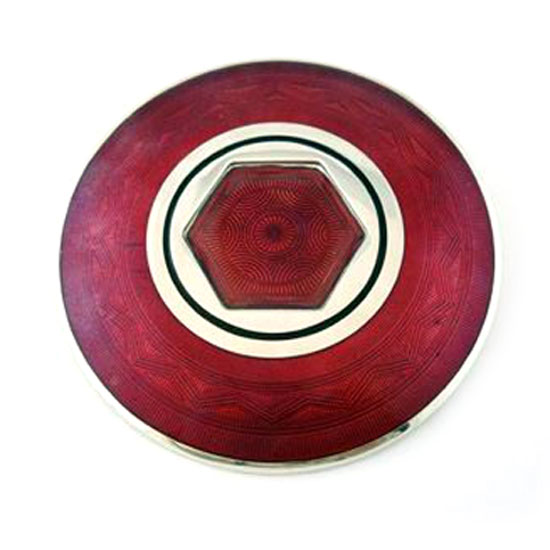 As shown is a cloisonne emblem coming in a round shape. This piece features a hexagonal pattern in the middle. It also displays a nice color combination.