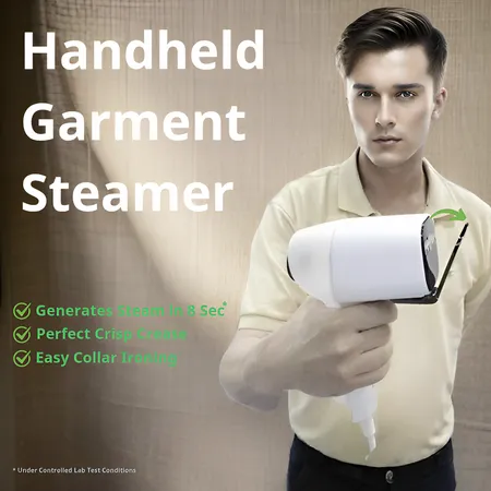 Remark: Creases can be pressed into fabrics. Your dress shirt will look crisp if you use our compact clothes steamer.
