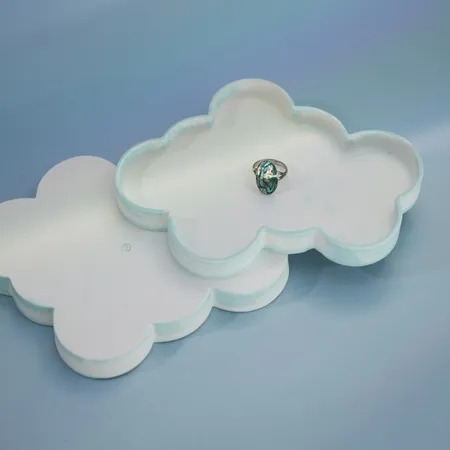 The cloud tray is inspired by early iron window frames, which often used simple lines to illustrates flowers, birds, mountains and other natural elements. The tray is composed of geometric circles and retains the ceramist's glazing technique, making each piece unique.