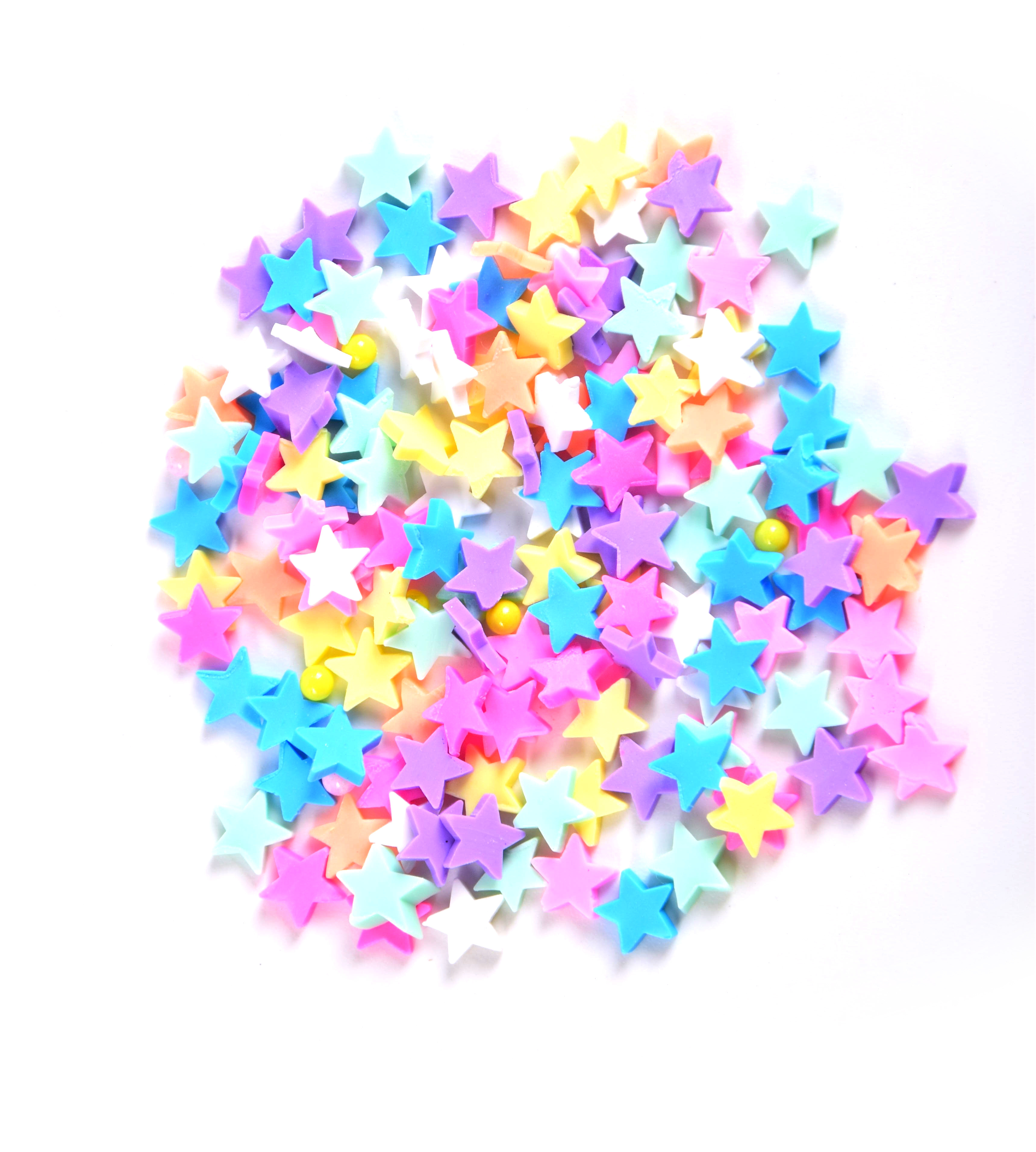 Add-ins: colorful stars fimo with pearl,color disc,big dinosau,foam colored eggs