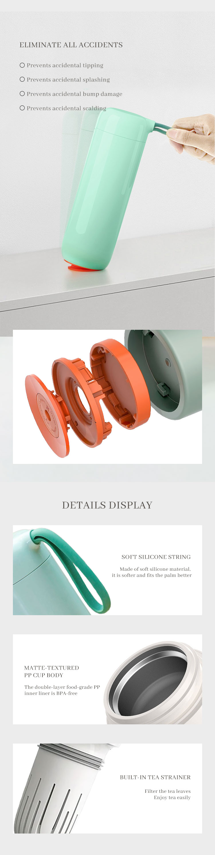 • Round cup mouth with buckle for easy drinking