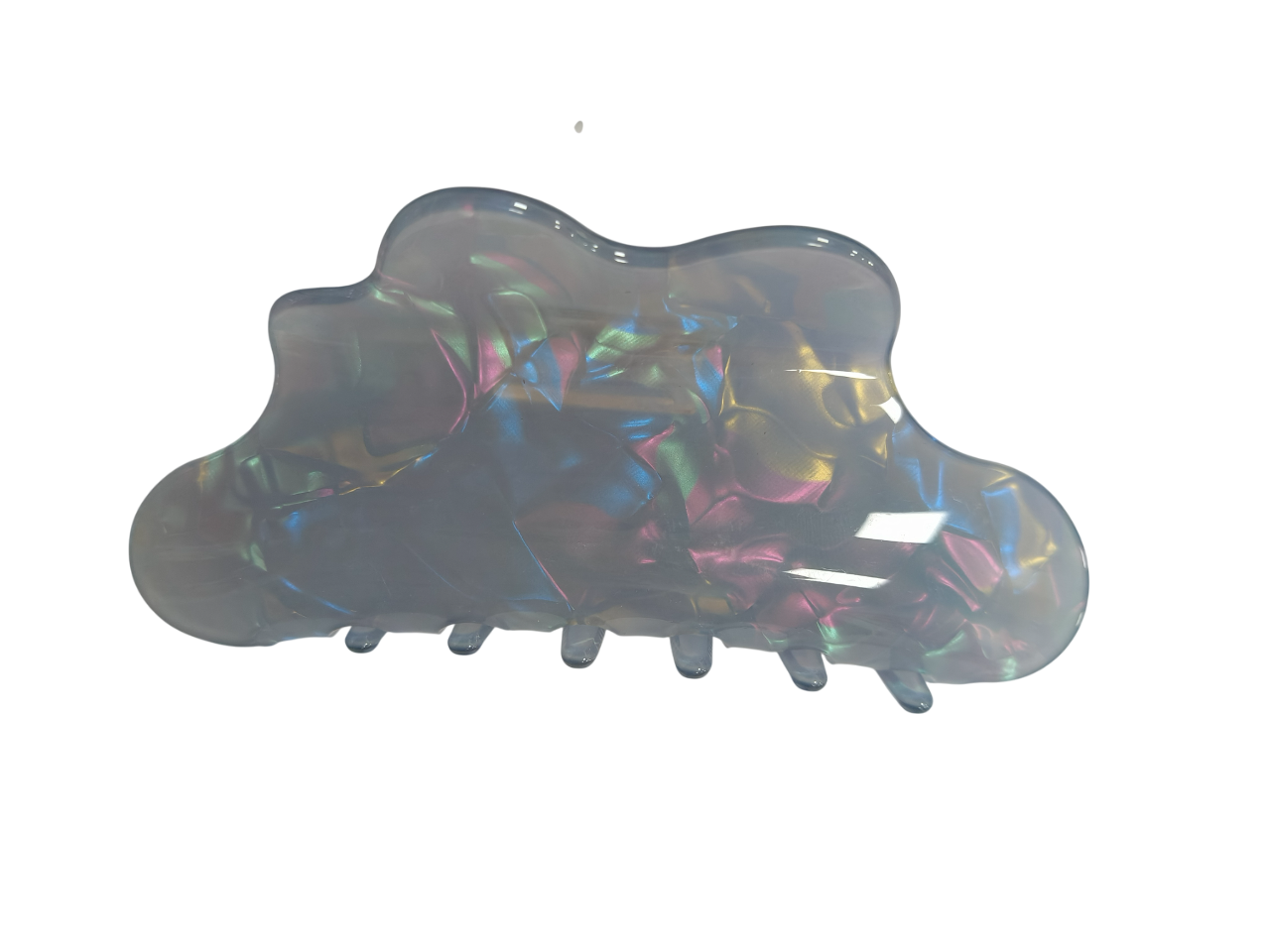 This hair clip takes inspiration from clouds, which are often associated with softness, tranquility, and a sense of freedom. The iridescent effect mimics the way clouds can catch and reflect light in beautiful, ever - changing hues, adding a touch of magic and dreaminess. It's designed to bring a whimsical and ethereal quality to hairstyles, appealing to those who love nature - inspired or fantastical accessories, and want to add an element of light - hearted charm to their look.
