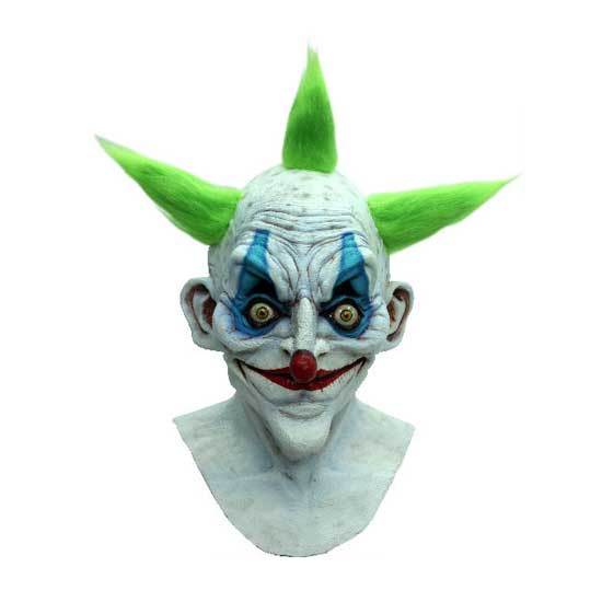 This mask features the look of an old clown with three strands of green hair in a triangular shape. It is made of rubber latex for sturdiness. This ugly and scaring mask is a wonderful choice for Halloween parties.