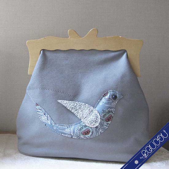 This clutch bag is designed with a lovely bird motif made of patterned fabric. The delicate wooden handle adds extra style and character to the design. This bag comes with a detachable strap for users' convenience.