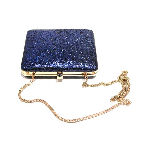 This clutch bag comes with a glittery surface that will attract your attention instantly. It is designed with an easy-to-operate closure mechanism for added user-friendliness. The shiny chain strap allows easy and convenient carrying.