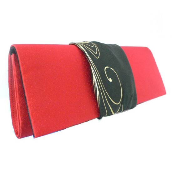 This is a clutch bag by the famous designer Naoko Tsuruta. The bag is made with genuine Japanese Kimono silk fabric with patterns on the strap of the bag.