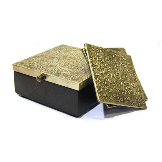 This deluxe coaster set includes six square-shaped coasters with embossed floral patterns for an elegant and antique look. The high-quality white metal construction offers enhanced heat and corrosion resistance, while the non-slip backing keeps the coasters secure in place. This luxurious coaster set is a glamorous addition to your tableware collection.