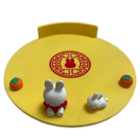 This coaster features a bright yellow main color, which is extremely eye - catching visually. Its round design is simple and elegant, making it convenient to place various types of cups. The surface is printed with traditional Chinese patterns, full of cultural charm. Paired with cute decorative figurines in the shape of a rabbit and small items, it's incredibly adorable, adding a lively touch to the Chinese - style aesthetic. Made of soft and durable material, the coaster can effectively insulate heat, protecting the tabletop from scalding, and also prevent cups from slipping. It's highly practical, making it suitable for both personal use and as a charming gift.