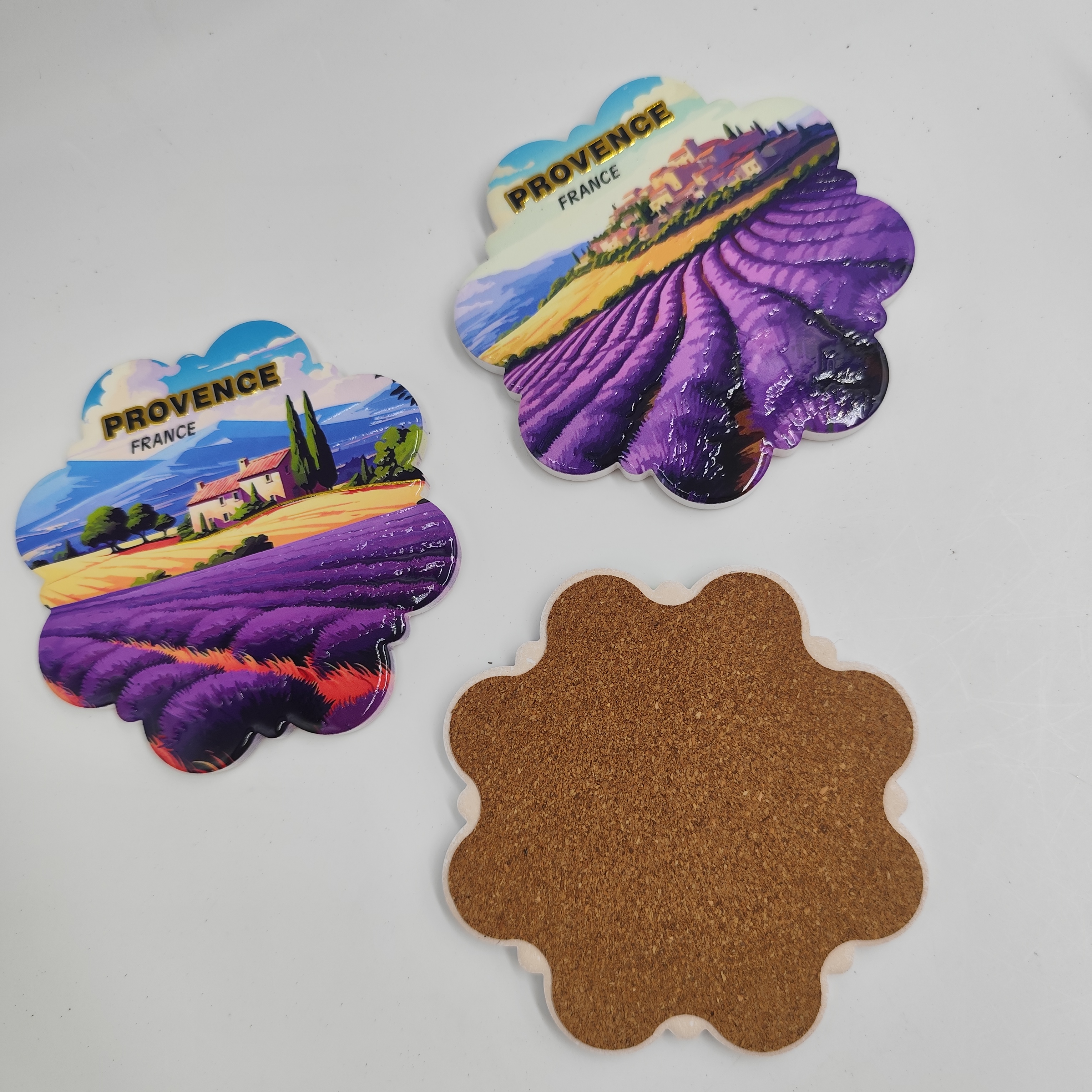 Non-Slip Cork Base: Each coaster is backed with a soft, natural cork layer that prevents sliding on smooth surfaces and protects delicate tabletops from scratches. The cork also absorbs minor moisture, keeping your surfaces dry.