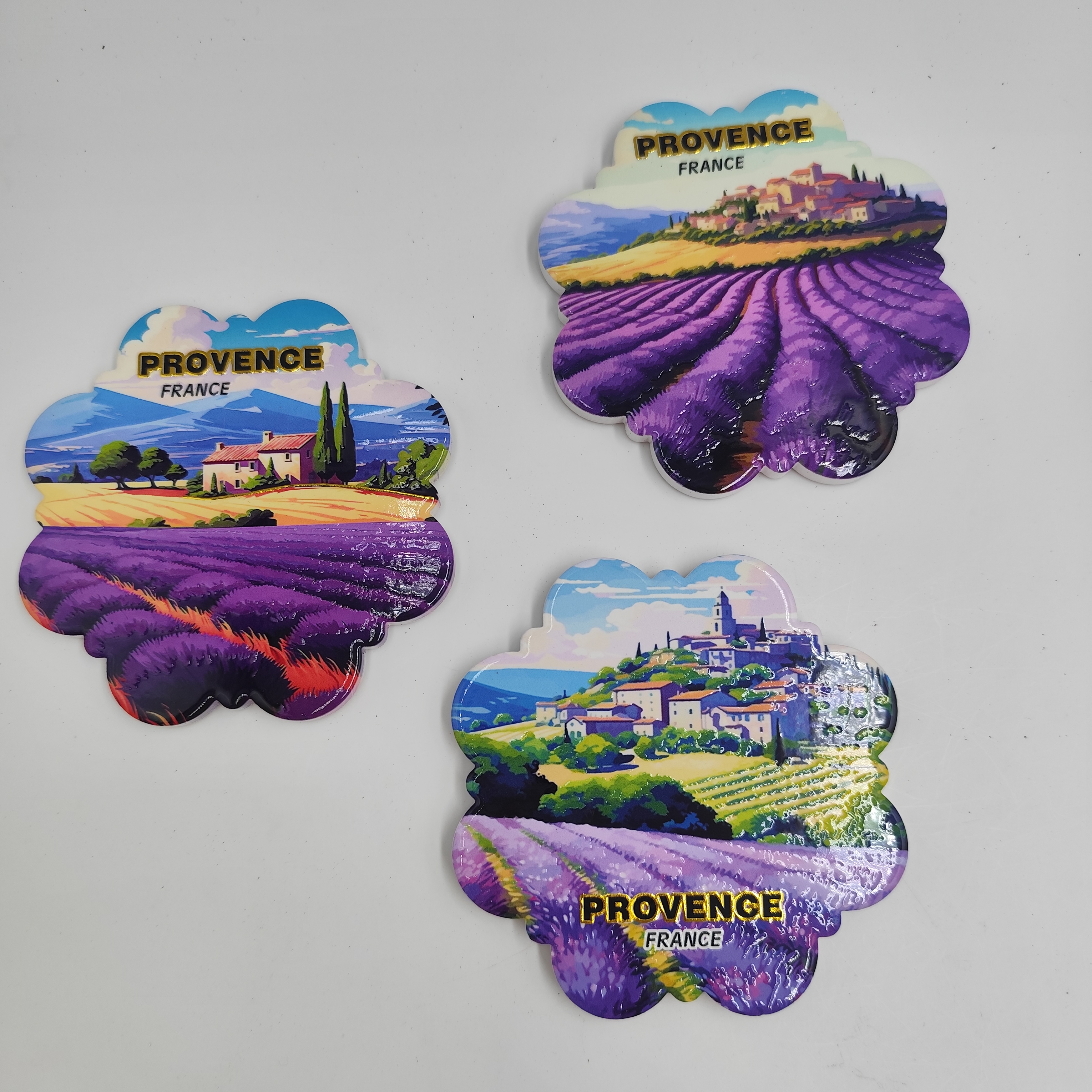 Coasters Set Exquisite Relief of Lavender Pattern Custom Ceramic Coaster Set Round Felt Ceramic Coaster for Dining Table