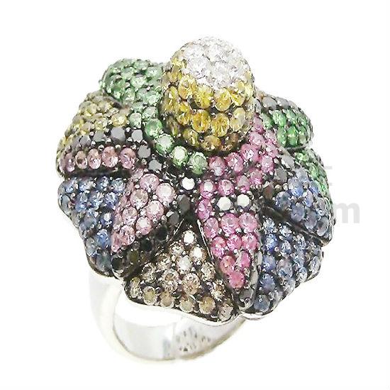 Dotted with white diamonds and multicolored gemstones, this glittering 18-karat white gold design is the perfect way to punctuate an elegant evening outfit. Try yours with a pale-blush silk-chiffon gown and a nude manicure to turn up the volume at your next cocktail party.