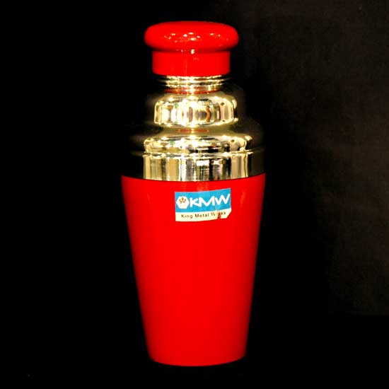 This cocktail shaker boasts a lustrous body with a red coating. The secure lid comes with a mushroom-shaped top for easy handling. Perform stunning cocktail mixing tricks with this eye-catching cocktail shaker.