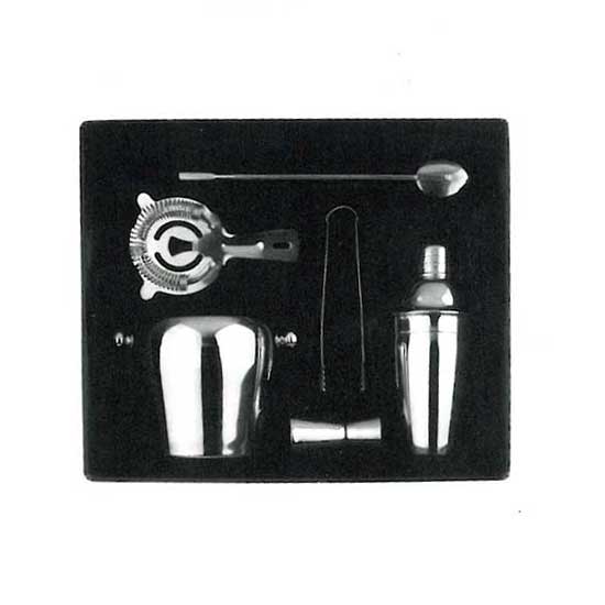 Displayed is an excellent cocktail shaker set that is crafted with high-quality metal material. This fine cocktail shaker set comes with an array of bar accessories in a stylish gift box. This excellent set is an ideal gift idea for wine enthusiasts.