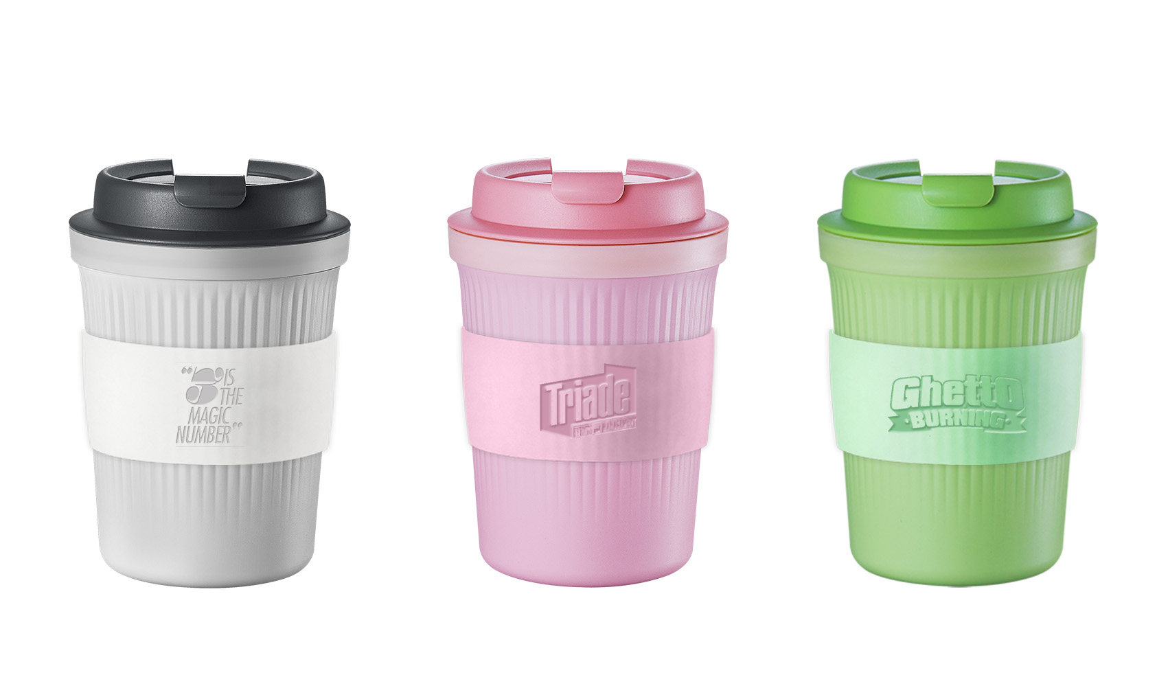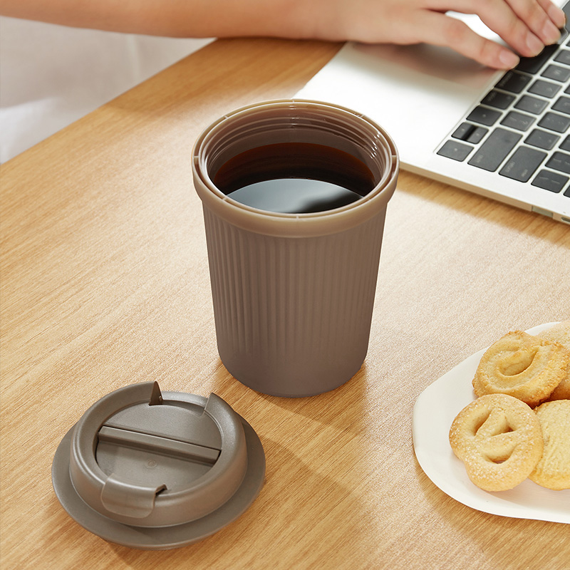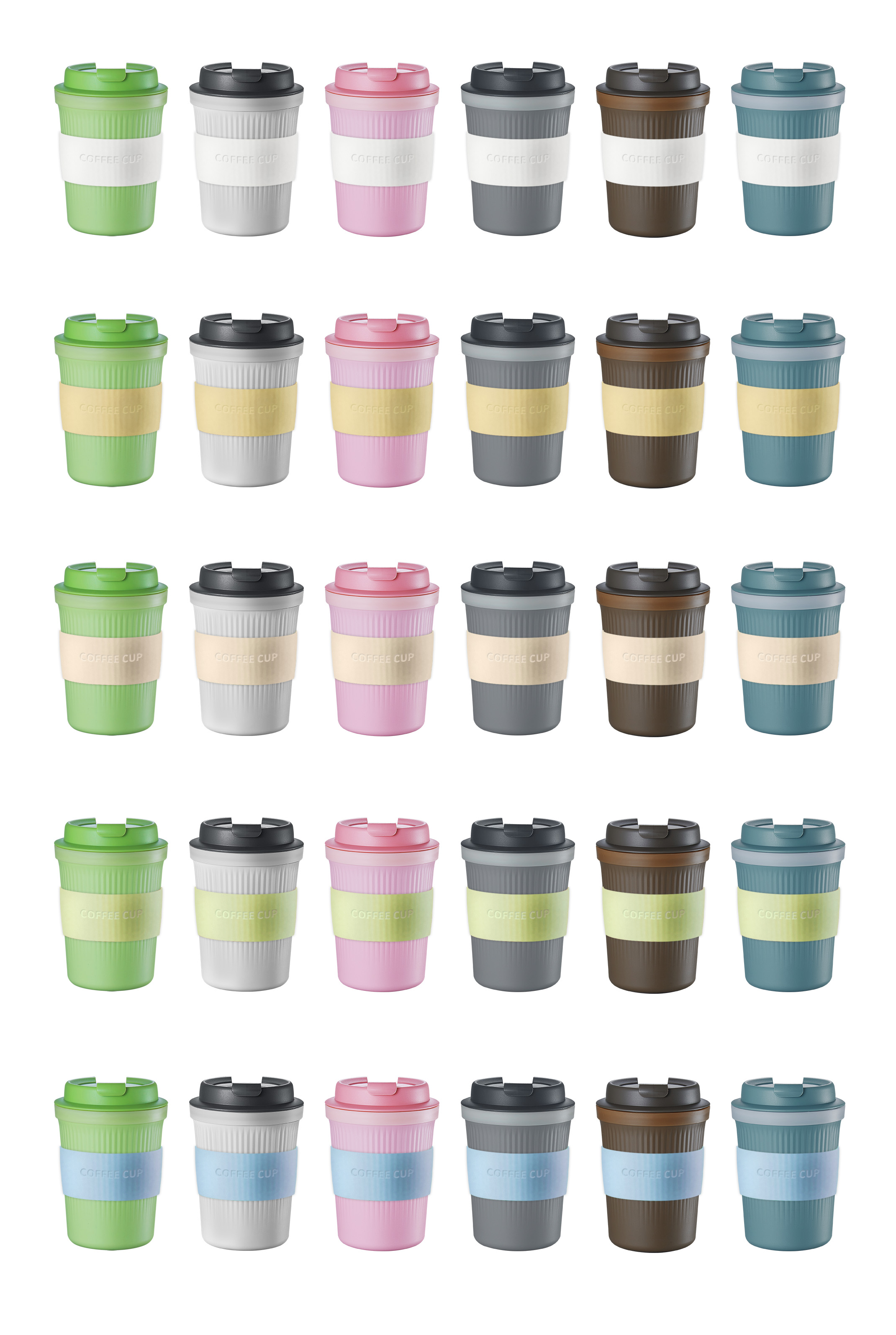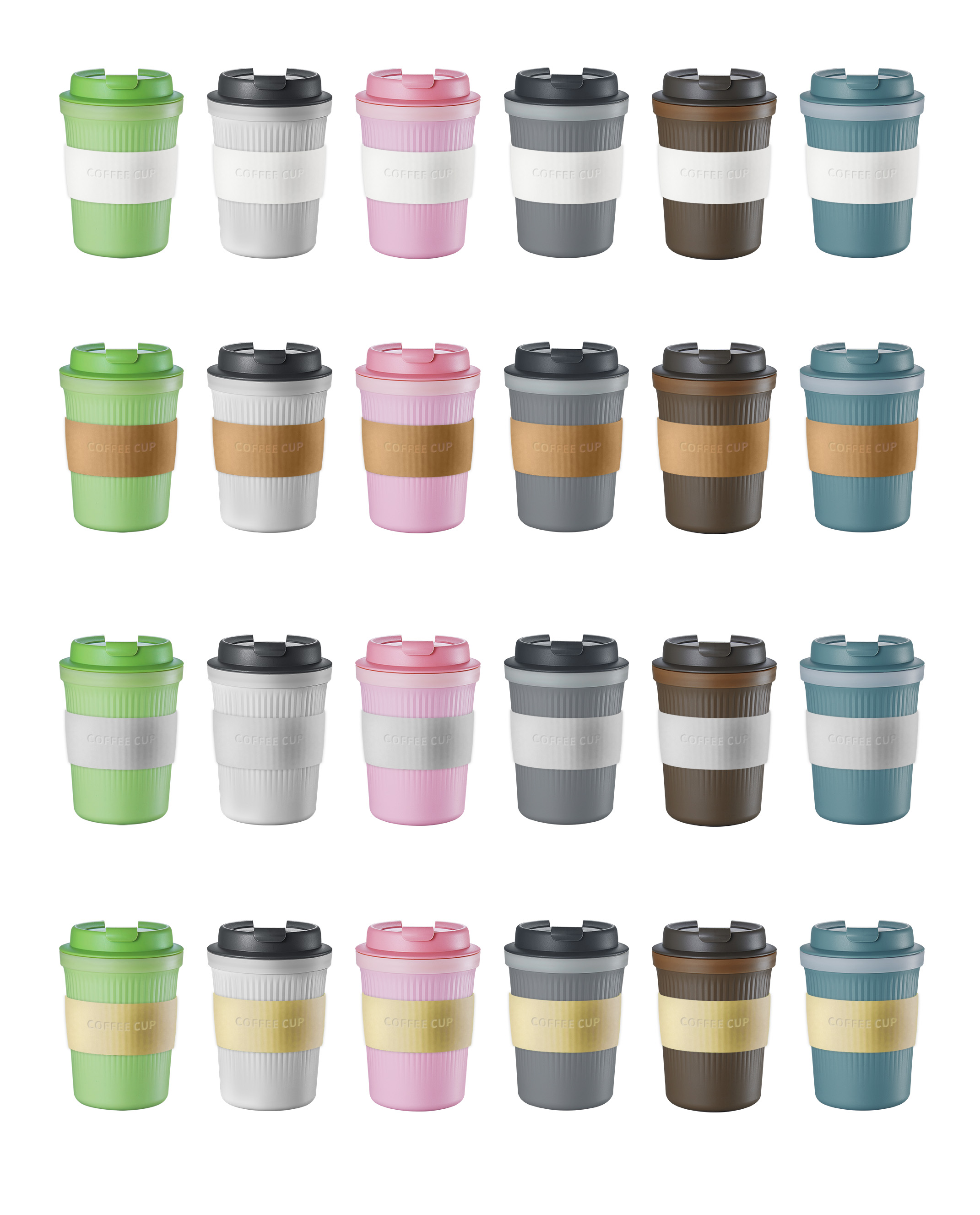 PP (cup body and lid), silicone (sealing ring and coaster)