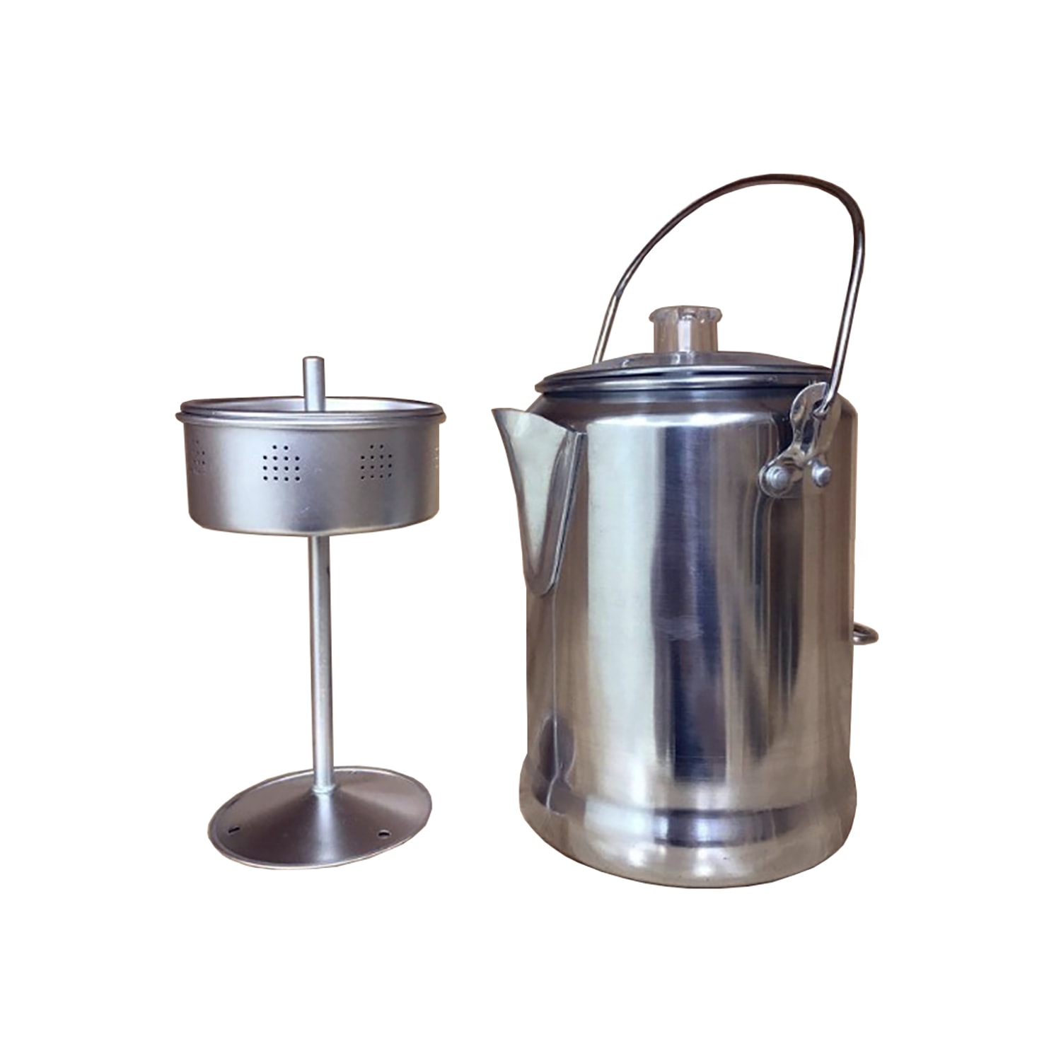 • It has percolator stem with basket and dual bail handles on top and side for steady pour