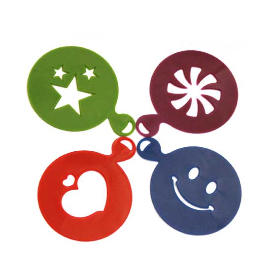 This is a series of coffee stencils that is available in assorted designs to create a decorative foam art. It is ideal for creating patterns and symbols on the cappuccino froth. The coffee stencil set can be used in homes, coffee shops and restaurants.