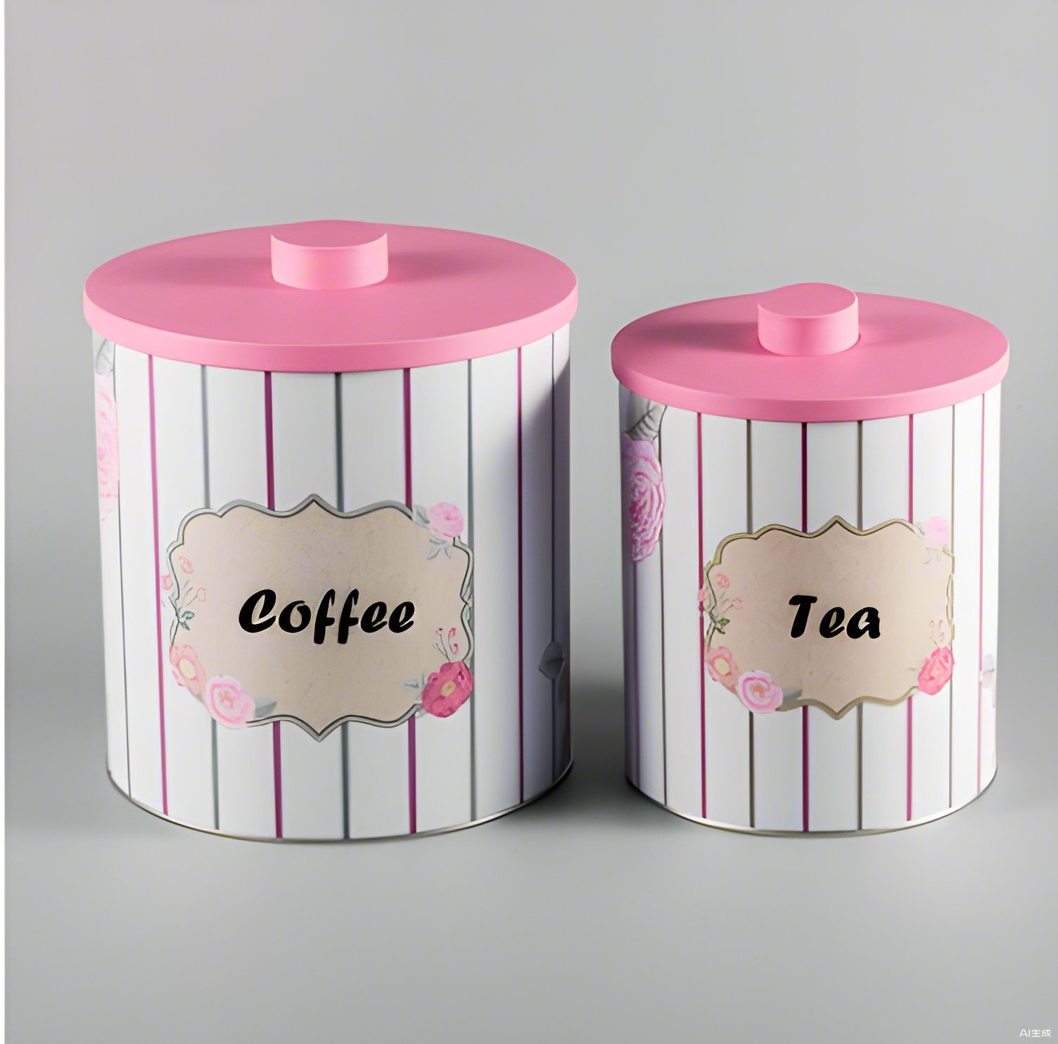 The canisters feature a unique striped pattern on a clean, white background, highlighted with pastel pink and purple vertical lines that add an air of sophistication. The front of each canister displays a vintage-style label adorned with floral decorations, clearly marked as “Coffee” and “Tea.” This subtle yet elegant design ensures that each canister stands out while remaining cohesive as a set, making it easy to find exactly what you need. Whether you’re hosting guests or simply savoring a quiet morning, this charming set will add a touch of warmth and style to your kitchen.