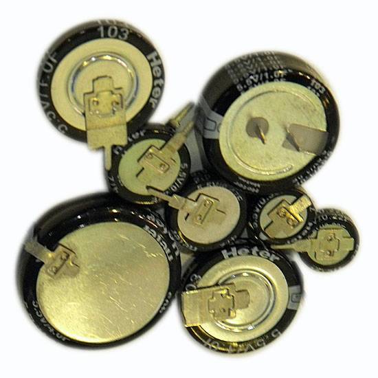This coin capacitor has a large capacity and a good memory characteristic. It is well manufactured to ensure high reliability and a long life time. It is applicable to electric toys, voice IC products, LED devices and small power supply units.