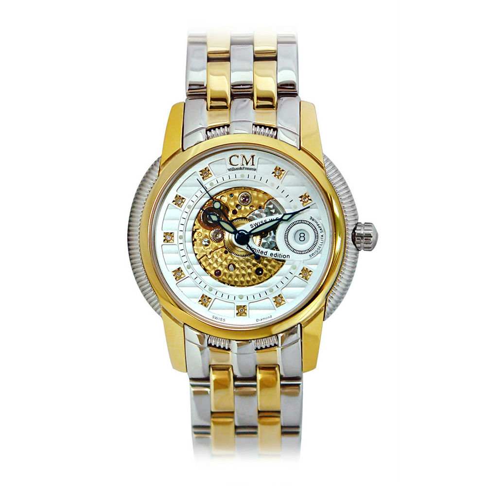 Meticulously crafted with great attention to details, this precious watch channels a classic style designed with a two-tone gold-plated stainless steel construction. The coin-edge stainless steel case features a round skeleton dial operating with three rotating hands to offer exceptional performance.