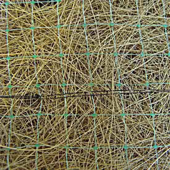 - Coir log with a UV-stabilized poly net.