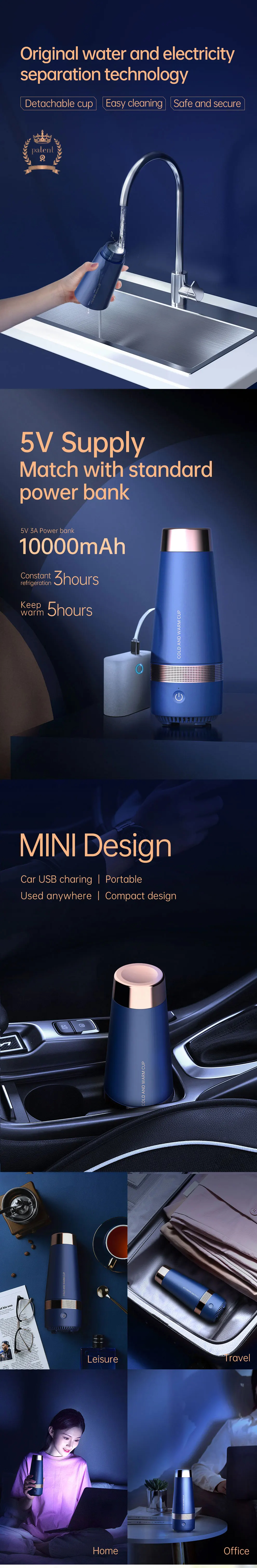 5. Easy carrying, can be used with power bank and car battery(10000mA or portable power with at least Output 5V 3A,can be continuously cooled for 3 hours or holding temperature for 5 hours) .
