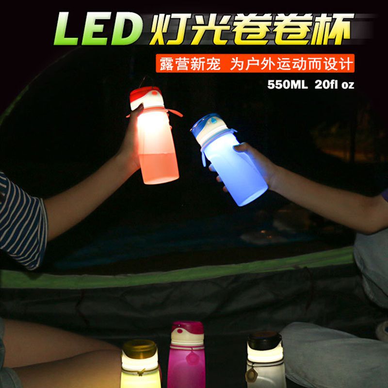 Collapsible Silicone Water Bottles with LED Light - BPA Free 550ml Foldable Bottle,Leak Proof Waterp