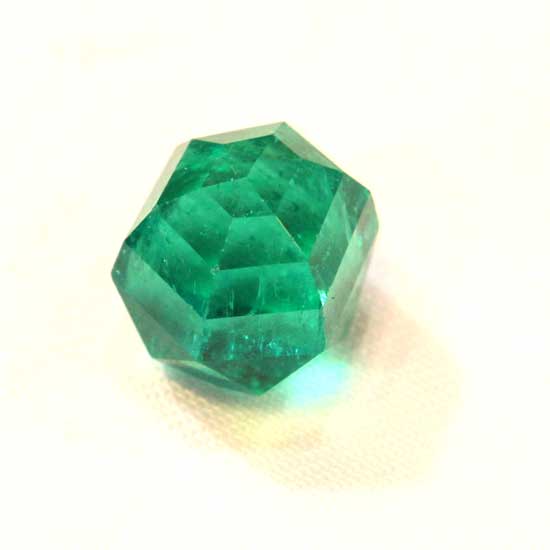 Featured here is a piece of emerald from the mysterious Colombian land. The emerald gives a hexagonal system with carefully crafted facets. The pale yet captivating green characterizes this rare piece.