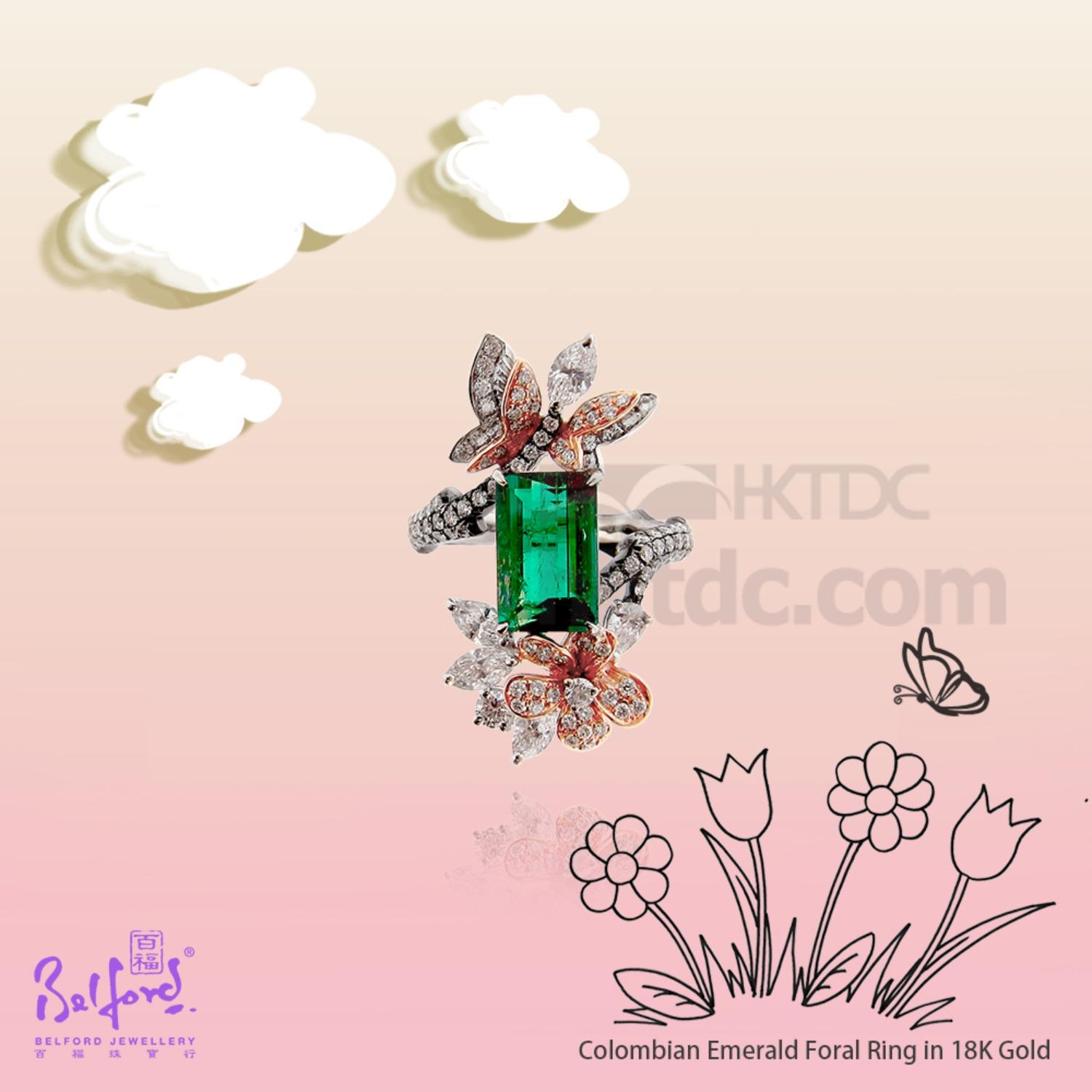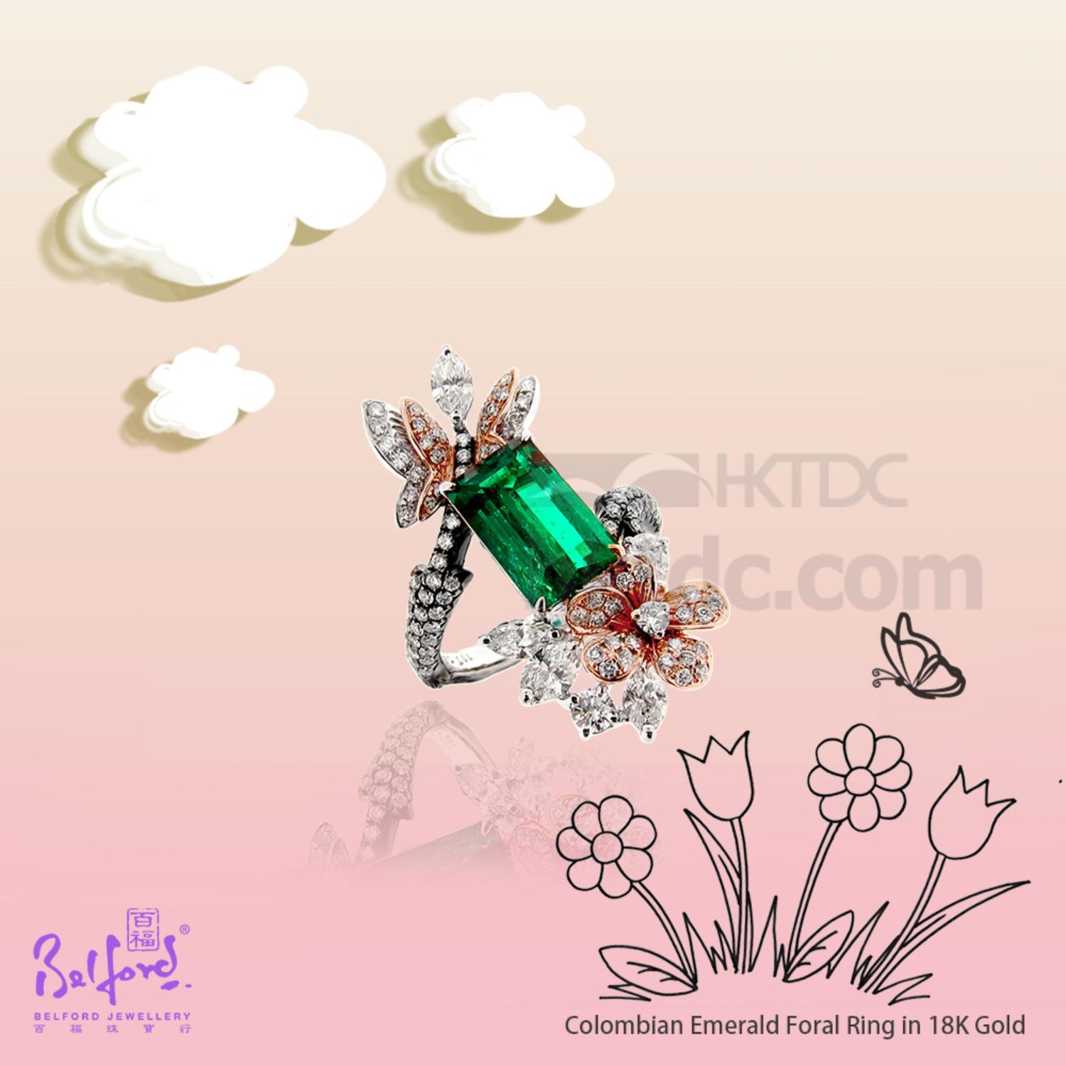 • Colombian Emerald Floral Ring in 18K Gold