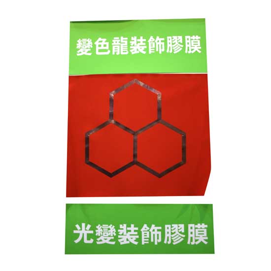 This is a piece of color change adhesive film that is a great decorative material for clothes. It is designed in three hexagonal shapes with a high-gloss finish. Made of top-grade material, this film has a long service life.