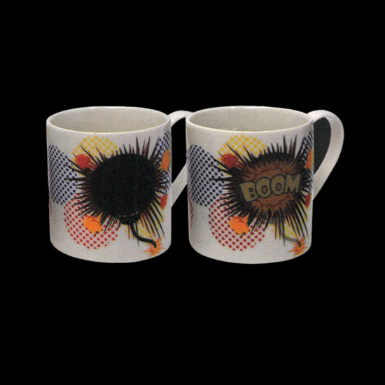This is a white mug with colorful patterns. It is made of food-grade material with excellent craftsmanship. This interesting mug is suitable for home and office use.