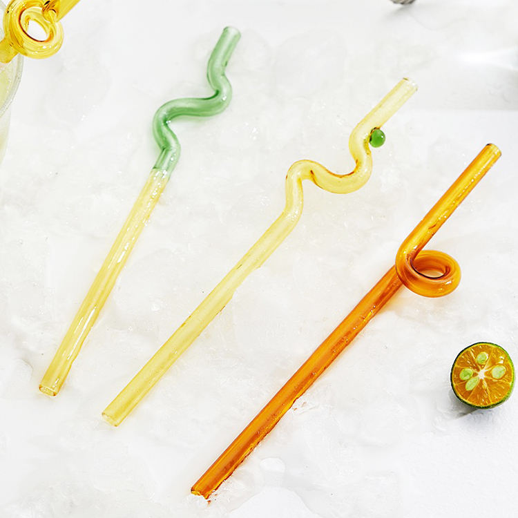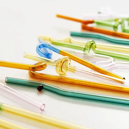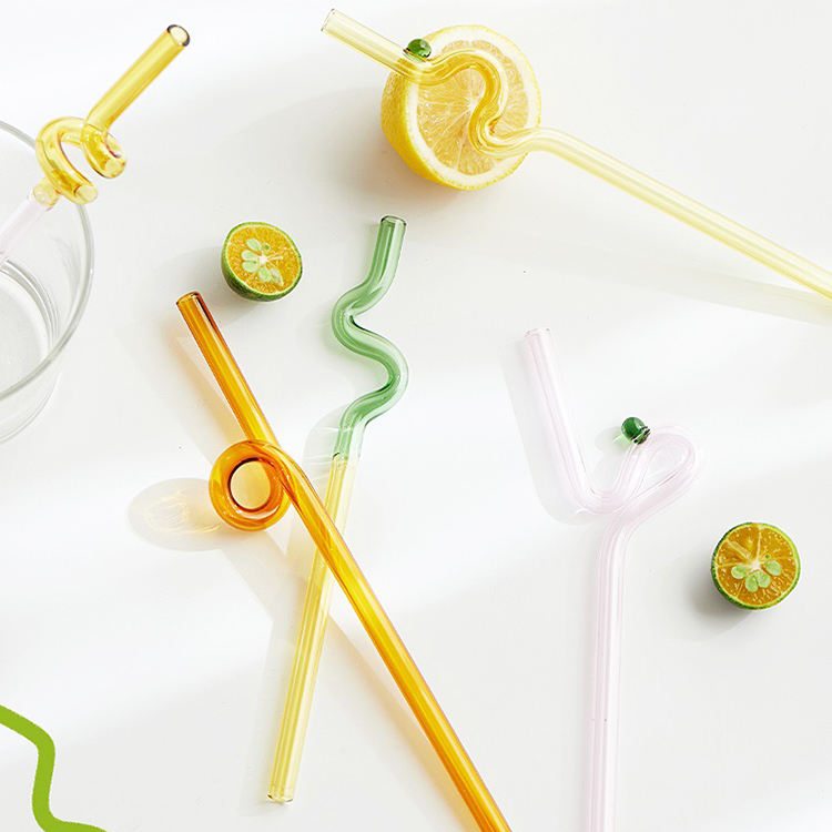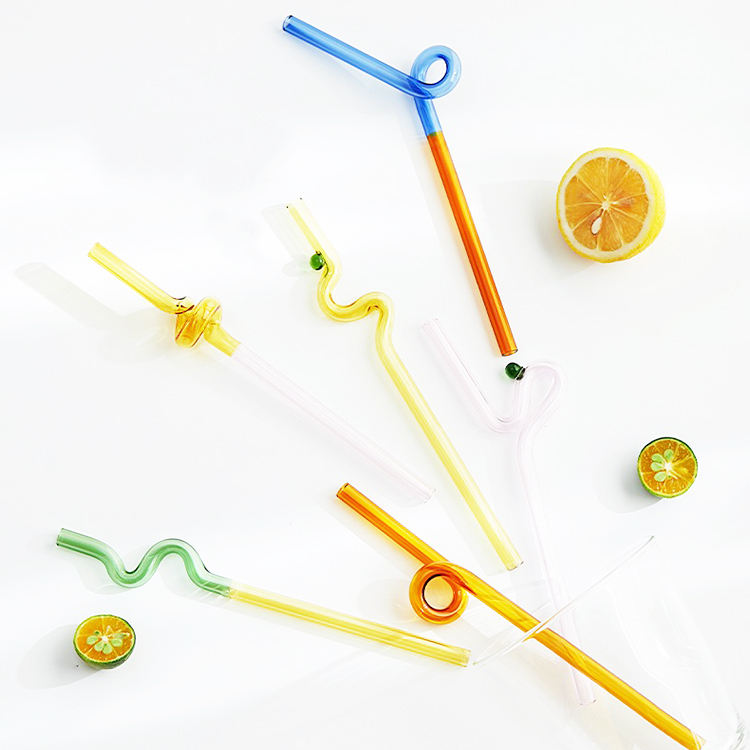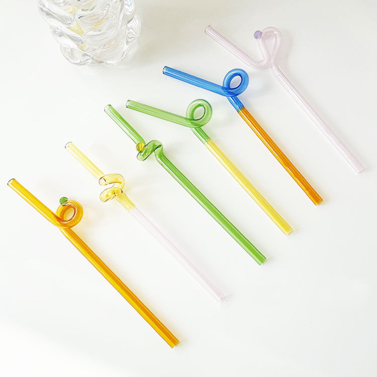 Colored Borosilicate Bent Glass Drinking Straws for Water Milk Juice Tea